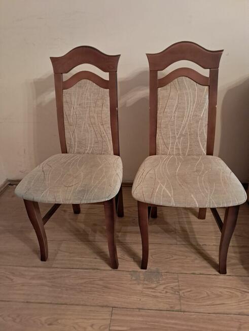 Do sprzedania dwa drewniane krzesła z beżowym obiciem i wysokim oparciem. Wymiary krzesła w cm: wysokość całkowita - ...